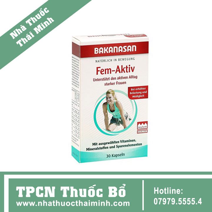 Viên uống Bakanasan Fem-Aktiv 30 viên bổ sung sắt, vitamin và khoáng chất cho cơ thể, hỗ trợ làm giảm căng thẳng mệt mỏi, tăng cường sức khỏe.