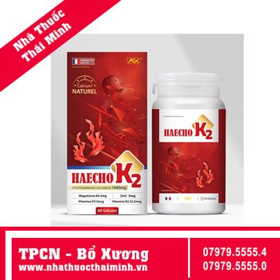 Haecho K2 (60 Viên) bổ sung canxi từ tảo biển đỏ, vitamin D3, vitamin K2 cho cơ thể. Tốt cho xương và răng.