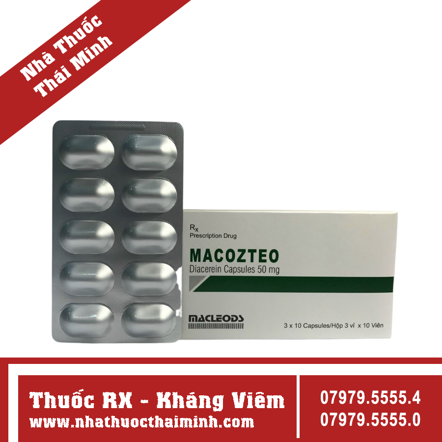 Thuốc Macozteo là thuốc kê đơn, thuộc nhóm giảm đau, hạ sốt. Thuốc được bào chế dạng viên nang cứng, mỗi viên nang chứa 50mg dược chất chính Diacerein,
