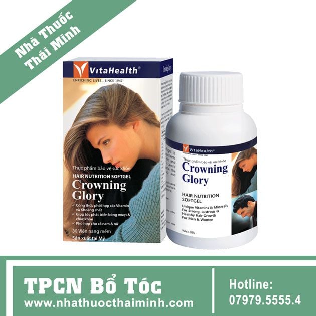 VitaHealth Crowning Glory - Viên uống kích thích mọc tóc, dưỡng tóc chắc khỏe